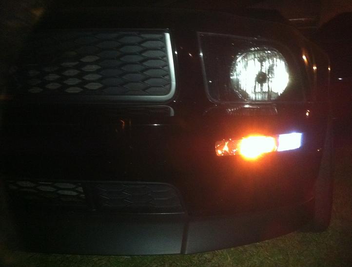 .I have LED's on the corners and and a stock bulbs for the blinker which look amber an night in-contrast to the LED's.