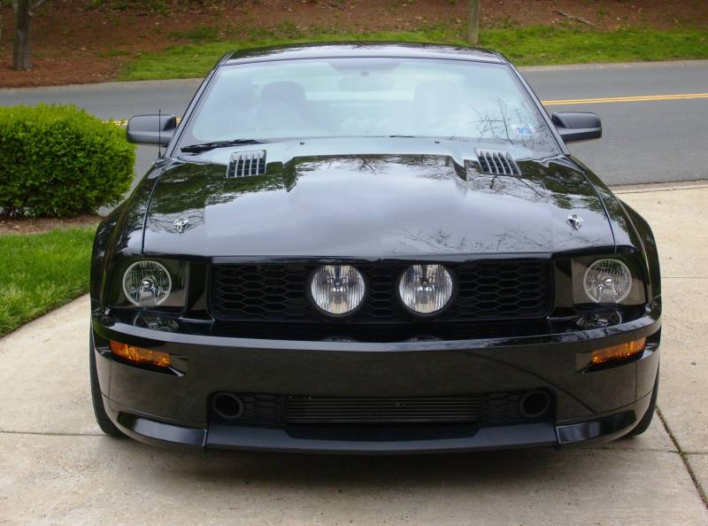 Looks great. I especially like the look from the front. Saleen hood is sexy and the ducts in the lower valence look great. Nice wheel choice and the car looks sinister without looking A-Team or Knight Rider!
