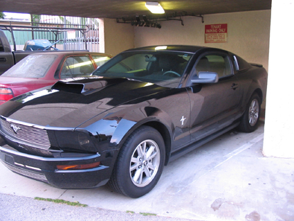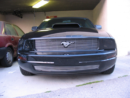 Well, after long contemplation, I decided to grow a pair and break out the drill and put some new holes in my hood. I didn't have the Cervinis template for the B9 hood scoop, so I made my own. I laid down the template, measured, measured and measured some more. It was now time to drill. The drilling was pretty easy, though I did not double check under the hood to make sure that the bit went all the way through. I spotted the scoop and peeled off the 3M backing. OOPS. The front holes only went through the hood, it didn't go through the other sheet of metal. So I had to pry the scoop back a bit so I could have enough room to drill again. I drilled and then set it back in place. Now it was time to see if my measurements and template were right. Low and behold they were, screws went right in and now I don't have to worry about that thing flying off. The louvers were easy, just measure and stick. It was actually pretty scary to drill holes in a perfectly good hood. Well, it did make it a bit easier when on the way to work this morning, some guy in a Superduty Ford truck hit a dip in the road and dirt and gravel flew out. It was like slow motion, felt like I was in the MATRIX. I could actually see this big piece of gravel bounce off the road and then BANG, bang, bang, bang, bang. I got one nice chip on the lip of the hood and about 5 or 6 small chips along with it. So I just figured if I screwed up the hood, I could do something to make it work. As a daily driver it isn't going to stay perfect forever. Here's some pics of my new scoop, louvers and headlight covers. It is a bit dirty, that nice CA dust. I just washed it on Tuesday.