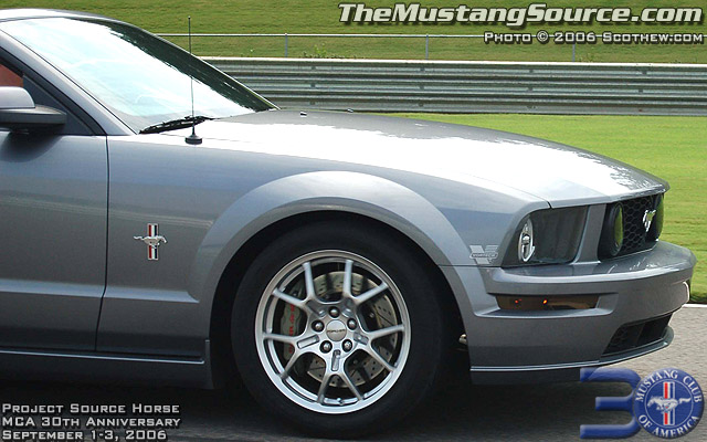 redbullet, those pictures are sweet! also wondering about GT500 brake compatibility and how much different the overall diameter of wheels and tires are from stock, as in odo/speedometer issues. if i ever get around to buying a new Mustang (long story), that combo is the way i'd go.