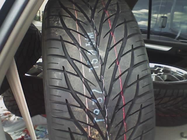 SWEET!!!! You didn't happen to take a picture of that by any chance? BTW, what size tire did you end up going with? And what make also, if you don't mind me asking? I need some advise for that. I don't have my car lowered (and don't plan to), and I want the same distance from fender to top of tire as I do with my factory 18"s. Thanks again for the help.