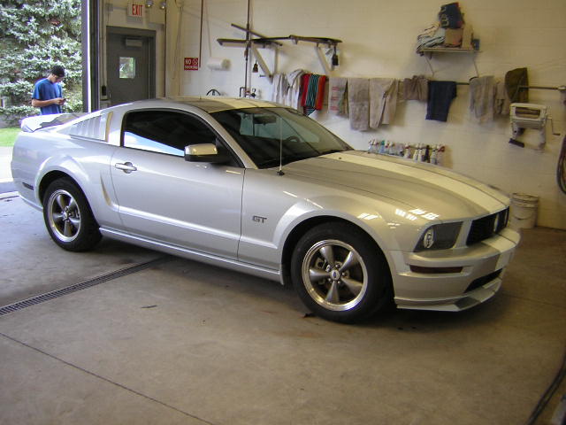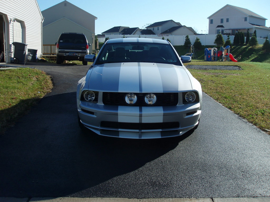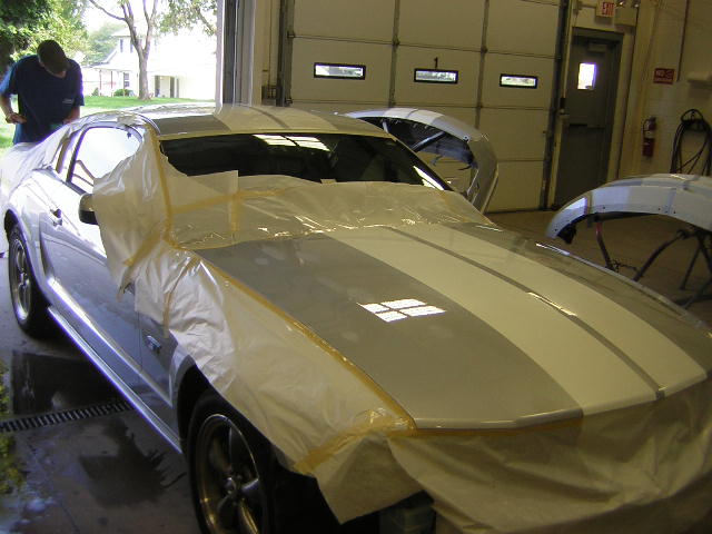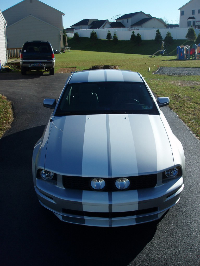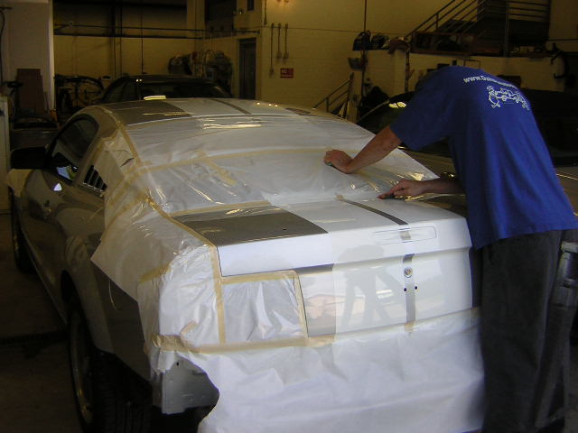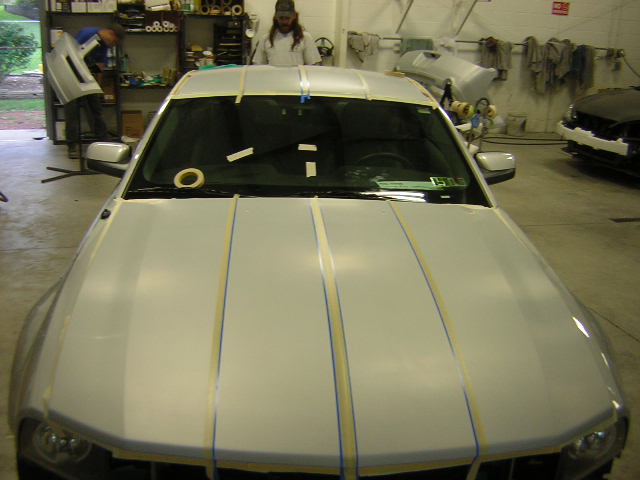 Here are some shots of mine. Doing 10.5" wide stripes with 1.5" gap. Color will be Ford 2005 Mustang Performance White.
