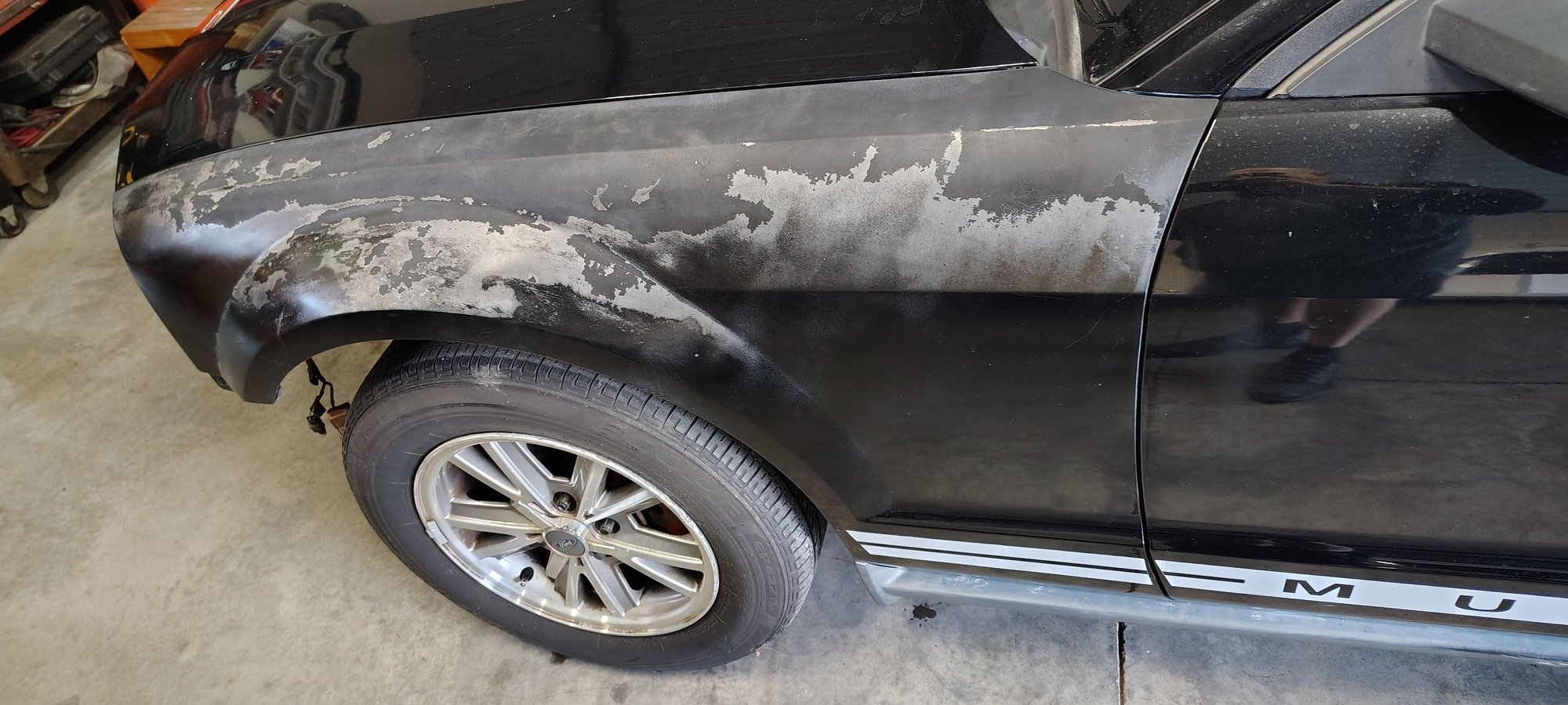I know this topic is probably been beaten to death, I've seen some posts that helped but still hoping for some advice. My oldest son bought an 05 mustang last year, had a very minor fender bender and a week later some stopped up converters so I inherited the car. I did some painting years ago but it was not with the base coat clear coat system so I thought I would give it a try. The paint on the roof, hood, the top of the passenger door and one of the fenders had issues so I thought I would redo the roof, hood driver side fender and the passenger door. I replaced the damaged passenger side fender and repaired the bumper cover. Sanding everything down went well, the sealer went on smooth and the base coat went on smooth but I kind of screwed up some on the clear coat, mainly on the hood which I blame on some poor lighting in my garage. I didn't have any runs but I do have some orange peel. The car looks great from 10 ft away.but not at all happy with the hood. After watching a ton of videos and researching a lot of forums, I went out and bought some wet/dry sandpaper, rubber block, spray bottle and the magiars cutting compound. I started on the passenger side door because there was some imperfections in the clear coat, did the wet sanding with different grits then tried the cutting compound with a buffer just like the YouTube video stars do and it did not quite turn out like it did in the videos 🤔. So I'm looking for any ideas or suggestions because I really don't want to resend and repaint the hood and I would like to make the roof look better. The car looks great from 10 ft away but the clear coat on the hood and now the dull part of the door is shifting my OCD into overdrive. The painting and clear coat was done over a week ago and it has set in the garage since, I waited for a week before attempting to smooth out everything. Is the wool pad better than the foam pad to apply the compound? Will waxing after the cutting compound make any difference, does a clay bar system help any with fixing the clear coat issues?