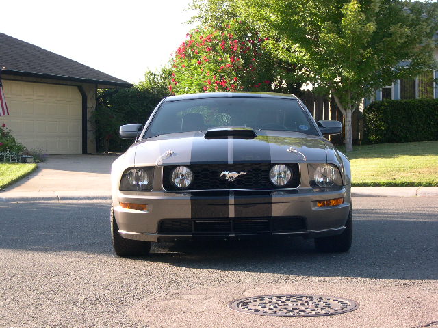 I decided to put my stock grille back in. I haven't had it like this since I got my car striped. I also decided to add the PJ Saleen look to the grille.