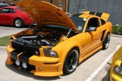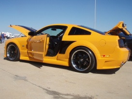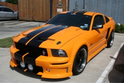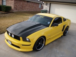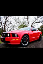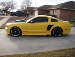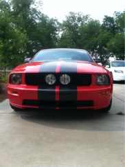 I have an 05 gt in torch red w/ flat black 10" racing stripes. I'm satisfied with performance (intake, tune, exhaust) and I'm looking for some aesthetic upgrades now. I want to lower it 1" in the rear and keep with the red/black theme. Should I stay with the regular racing stripes an go wider or go with a different style?