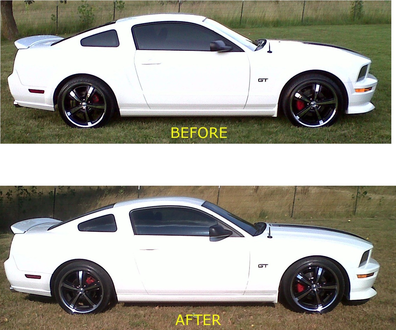Lowering with shocks and struts will give you a firmer (sometimes - some people have setups they say is not much different from stock ride) and more reactive mustang (all the springs say reduced nose dive during braking, planted in the turns, etc). Shocks and struts are there to help out when you lower it and want to retain a good ride quality. Lowering without shocks and struts will wear your stock dampers out quicker. There's lots and lots of information and reading to be done about suspension modifications. It all depends on your end goal. I just wanted a lower stance, and if I end up getting too much wheel spin I can always go with lca relocation brackets to correct the angle of the arms.