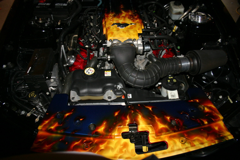 cool.....man we really have some cool ideas about doing stripes out of fire.....we would do em on mine but I already have the steeda hood flamed all over ...just let us know when your ready ;-)