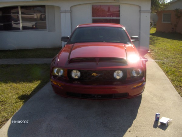 I gotta be honest, I saw the pics on the first and laughed. It looked like it was all thrown together, especially the billet grille OVER the fogs, barely hanging in. The functional ram air hood, stripes, and GT500 bumper are a HUGE improvement. It looks respectable now. Just please don't put a cobra badge on it.