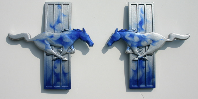 You can order the Pony emblems from KC @ Clevenger Ford. To get the emblems off you can use fishing line and a hairdryer to slowly pry them off.