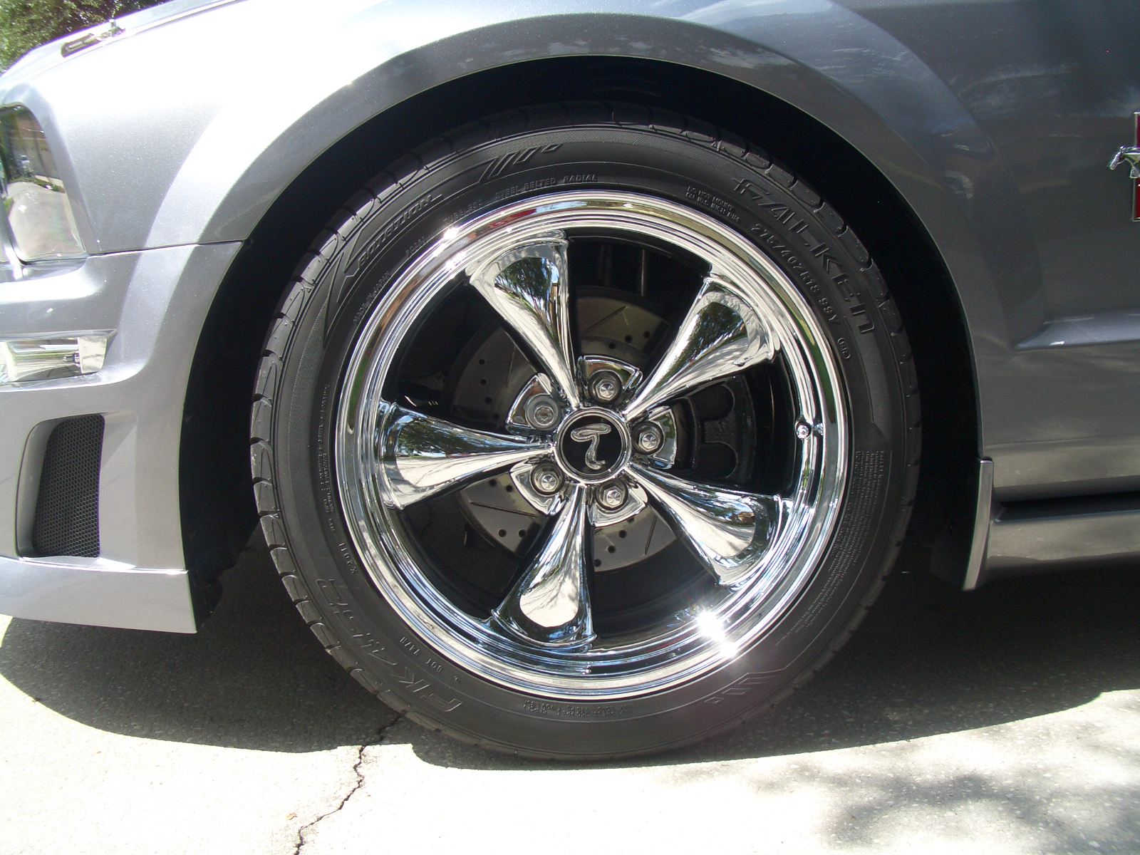 Here are some pics. Shaun, I decided against the stickers. The pony ones had black fingerprints on the sticky side of all 5. I knew they wouldn't hold since the sticky part had been comprimised.Thank you anyway. I'm happy it's done and pleased w/ results. Also got the 295/40 Falkens on