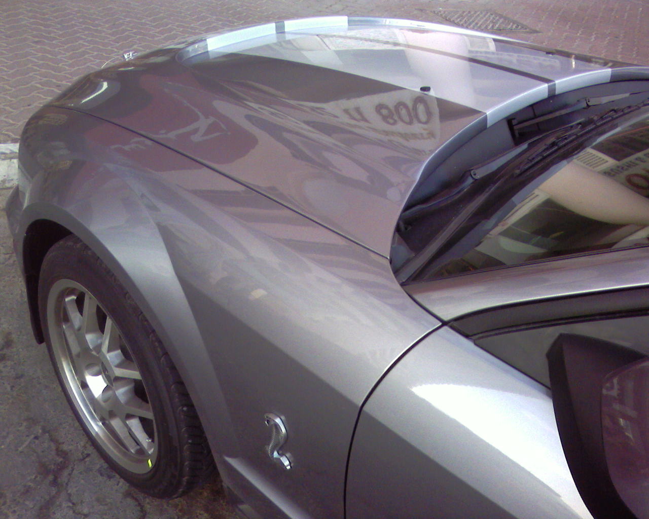 Yahoo just crapped out on the upload, I'll try sending two separate emails. The plastic is part of the mustang cowl. The black plastic add-on piece towards the front has to be ordered separately from the hood. It looks to be pop riveted on.