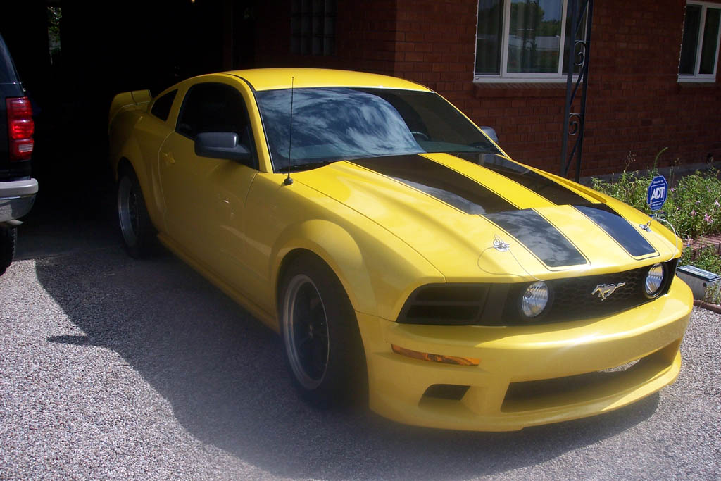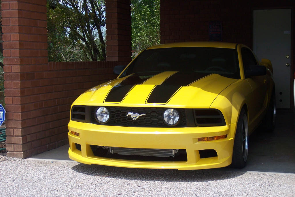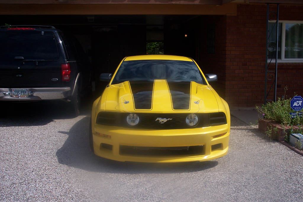 The hood stripes remind me of the 1970 Shelby GT500 hood stripes. They are just a little less pointy at the front of the hood. I think the car looks great. Not a fan of the horse head but if you like it then rock it.