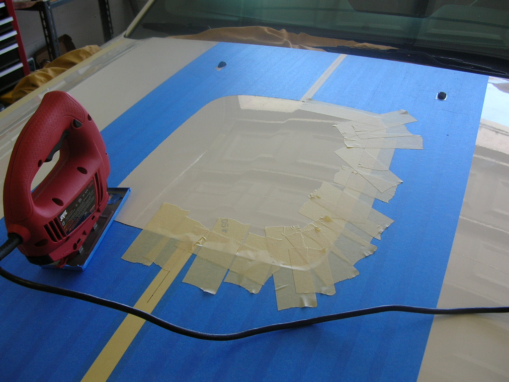 The hardest part was NOT cutting the hood - it was making sure the shaker scoop was perfectly centered in the opening (something somebody at the production facility wouldn't care as much about).
