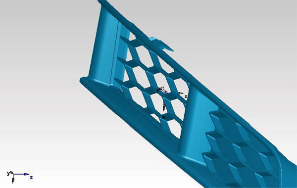 The pieces are clip-in inserts that install into the existing lower grill, hence how we are going to be able to keep this well into the sub-100.00 range, because we won't have to tool up a 125k mold to produce them... it's still not a cheap set of molds, but it is more affordable than previous pieces we've designed. We're using the draft of the existing lower grill to actually help trap the part in place - so it literally snaps into place in 30 seconds, no adhesive required (although for a permanant installation I'd recommend some plastic cement or MEK to bond them together)