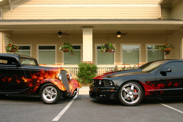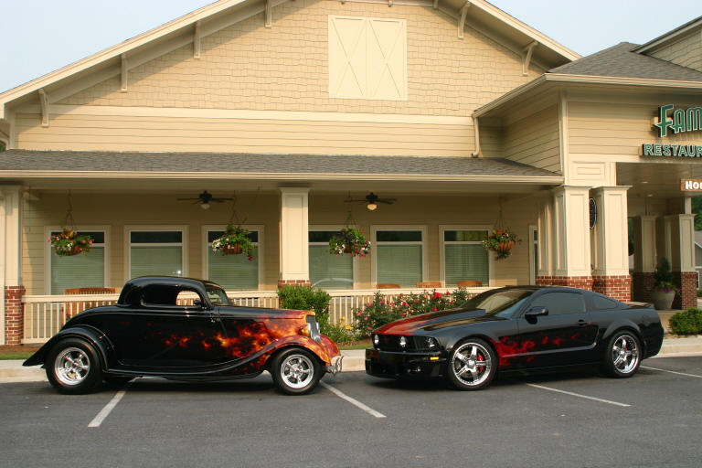 my stang and customers 34 ford...the 34 just won the dupont best paint award at the goodguys nationals at the atlanta motor speedway out of 2200 cars ....needless to say were pretty happy about that, mines not done too bad either