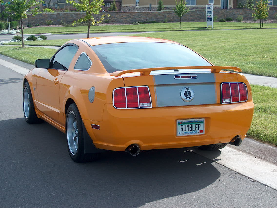 I'd like to hold off on pics.My neighbor may have to sell his 06'GT and take a loss(bummer).He may sell me his 20" Bullitts/new tires he just bought so he doesn't lose anymore money on his car.Same wheel,just black and staggered w/20x10's on the rear.