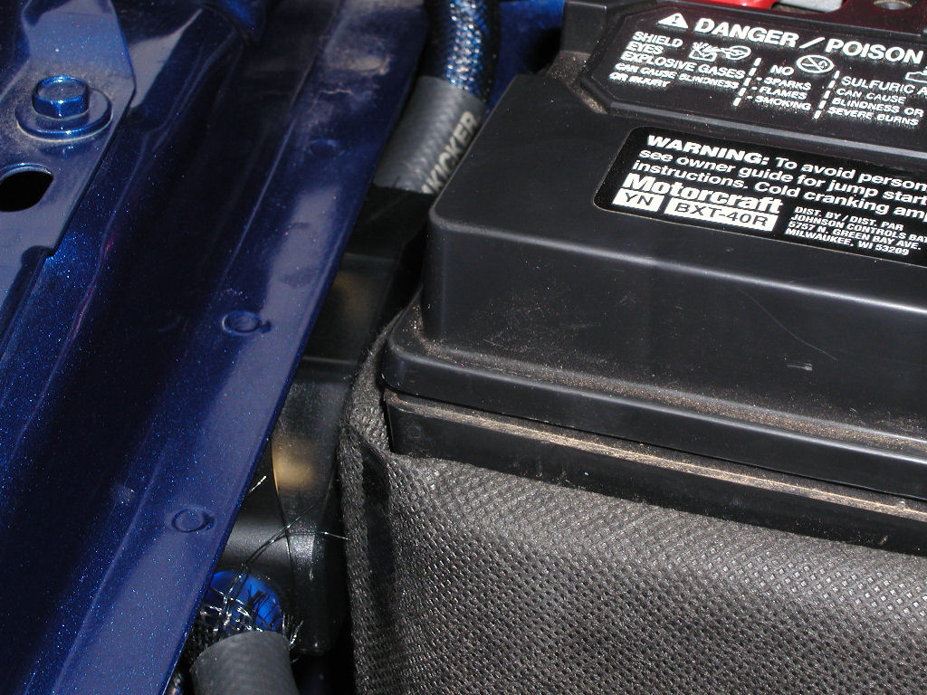 I studied the possible areas, trying to maintain the recommended =/< 18" distance from the battery to the fuse holder but yet keeping it out of the way of everyday functions.