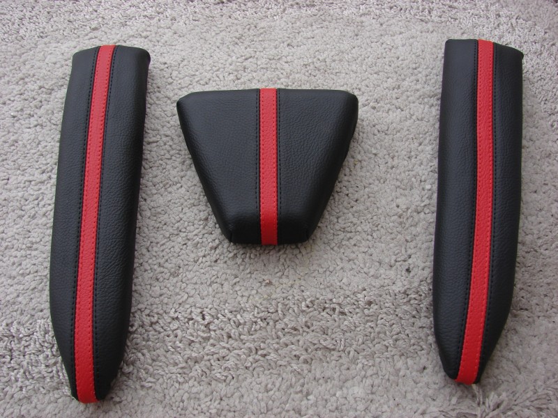The set that is shown in the pictures above (black leather with red stripes, obviously) can be had complete with the set of pads we used for development for $170 shipped as a promotional offer (you would pay $95 for just the pads from Moss Mustang). The first person to PM me their interest gets these.