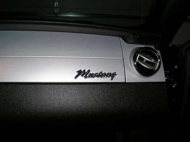 Thanks. I don't have a closer picture, but that's just a dash plaque I got at California Mustang. It has the tri-bar pony emblem with my name engraved. Glad you asked though cause from the picture it looks crooked, but while driving & looking down at it, it looks straight. Up close it's not as out of place as the photo angle.