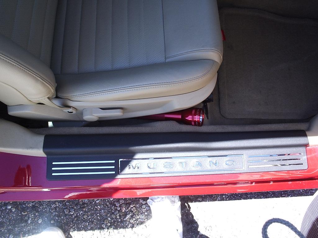 Well, I'm not sure exactly which interior option my car came with, but I don't think it was the IUP. Anyways, the interior is black and that parchment color(tan), and the door scuff plate was that same tan color. Every time it was brushed up against, the scuff marks would show up pretty bad because of how light the color was. So, I decided to order a set of black ones from fordparts.com, and then I had seen the scuff plate inserts on ebay, as I'm sure some of you have too. I thought it would look good against the black, so I ordered and installed both. I like the way it turned out, the inserts were well made, and overall I am REALLY happy with how it turned out.