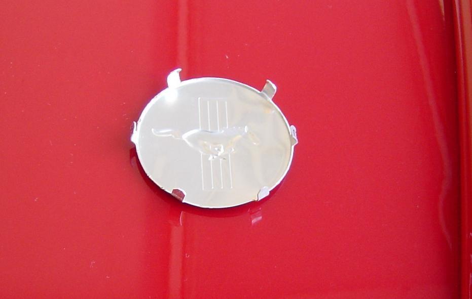 Ok, the final result. Overall, it looks nice, but the epoxy is soft and rubbery. I'll have to be careful not to scratch it. I think the plastic backer plate I made was essential to keep it smooth. I painted the edges of the plastic a gloss black to make it disappear. I hated cutting the rubber fins off the wheel, but that was the only way to make it work. Use a new blade so you don't have to push too hard. Pushing hard will increase the chances of slippage and doing damage elsewhere, and the horn honks. Incidentally, I can't seem to find a source for the Saleen caps anymore, even from Saleen. Did they quit making them? Still no reply from MakingItDigital on creating a custom emblem. I'd still buy one from Shelby if they would just make one...
