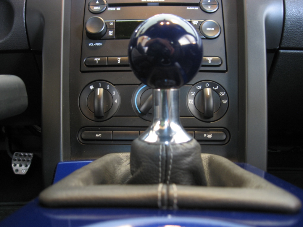 One the subject of the shift ball, I've noticed that it is a darker sonic blue than the console and the rest of the car. It also isn't a very even coat of paint. Not sure what kind of base coat they are using but it may be making the colors darker than fords paint. It looks like it matches in the pictures but thats because of the flash. When it's in mid to low light it almost looks black while the console looks blue.