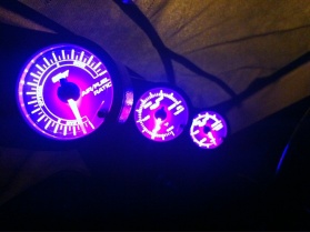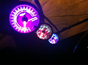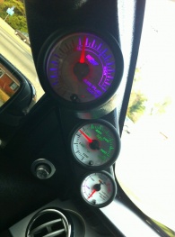 Very excited! The Stang is over at the shop getting her triple pillar pod installed this morning. I got one of those package deals from Glowshift, with the pillar that goes in up on the lefthand side. I've got all my interior lighting done in violet, so this will add to the look a lot, as well as the functionality of the gauges themselves.