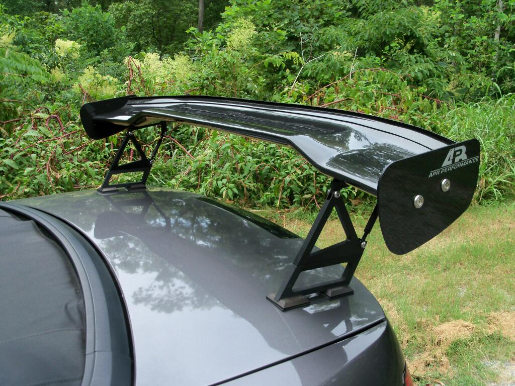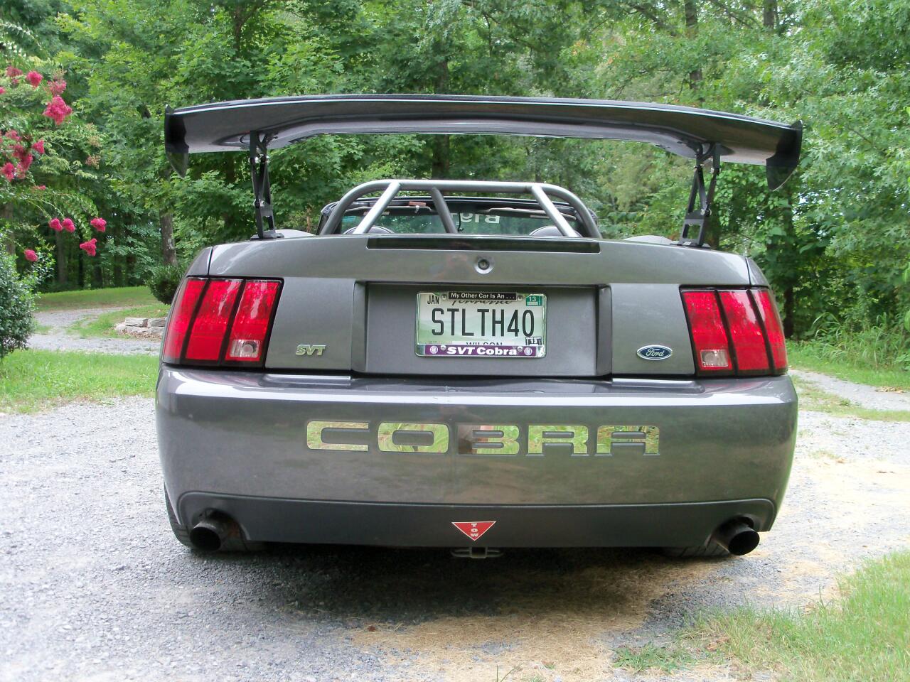 hey guys, I have a Termi I road race and have a Carbon Fiber wing that gives me 200#+ of downforce at speed, needed for the class I'm in in this front heavy Cobra. Did a custom job to plug the spoiler mounting holes, sanded and painted and found a smoked lens third brake light for the deck lid to keep with the "Stealth Cobra" theme. You can see all of this on the eBay listing here: