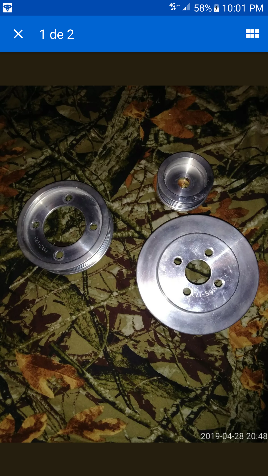The alternator pulley is on debate now. The current belt is now too long. I think if the alternator and idler pulleys are exchanged with larger ones it may fit. I already have a larger idler pulley stashed somewhere. If I feel better this weekend I may attempt that. My health has been a bi**h since the begining of this year.
