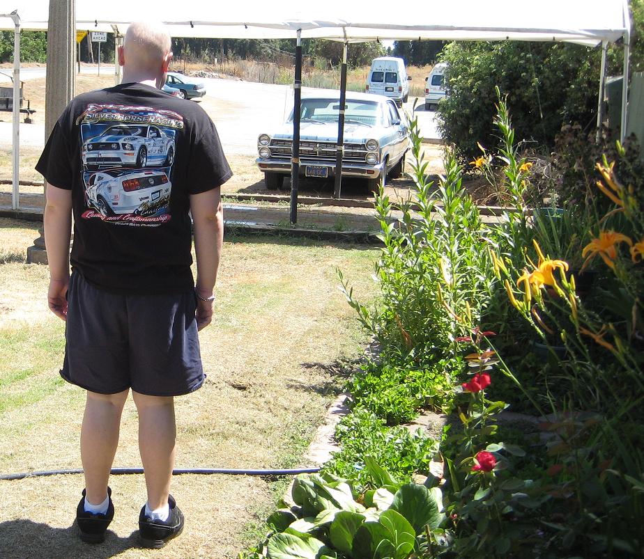 I finally got a little time to get Andrew to model a silverhorse Tee-Shirt as donated by marcello. Andrew is standing by sister sarahs 67 Fairlane which she calls gilroy and absolutely loves. Her friends think it's pretty cool as well. Now if I could find the Time to fix the A/C it would really be cool! LOL!