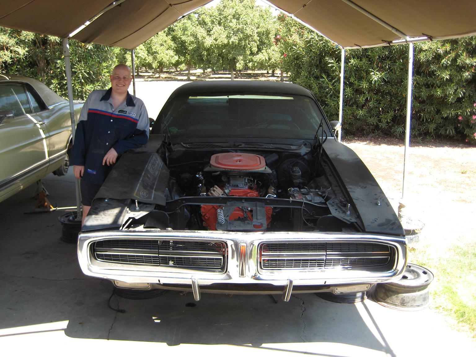 Andrew is just like Dad. Loves All Muscle cars. He wrenches on the fairlane for sis and he would like my 67 Ltd parked next to the Dodge! Did you Notice the MOTORCRAFT Battery. That will crank over that Big Block!