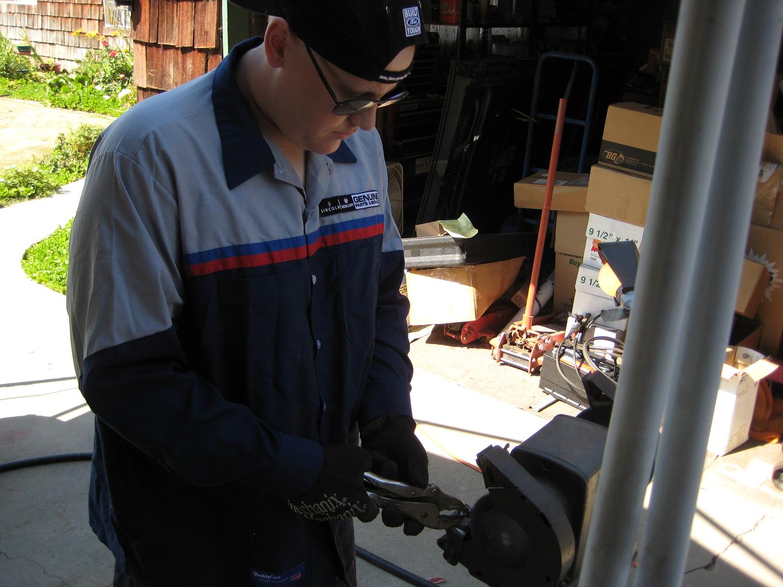 The plan was Andrew would simply watch & dad would do it all. Well his counts were good & he was feeling fair so I had him put on a longsleeve workshirt, Safety glasses,gloves & hat so he could clean up some of the hardware for the valve covers & intake manifold which we installed today. I think it was good medicine.