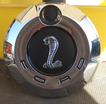 Chrome Surround With Recess Mounted Semi Gloss Black Beveled Insert With Matte Black Center Insert and Chrome Mustang Cobra Badge!