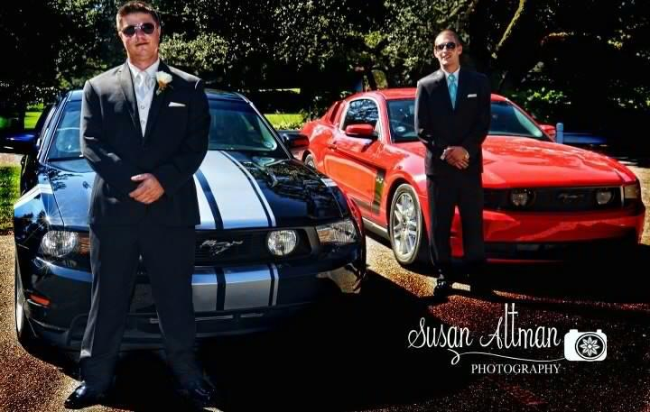 Hello everyone! I'd like to introduce my car, it's name is Defiant. The first two pictures were taken this weekend by the professional photographer at my wedding, hence why they're über photoshopped lol. The black one on the left is mine, the one on the right is my best buddy's 5.0. We have the same lowering springs and the same AM Eleanor style louvers. I had the stripes put on last week and the body shop got it done so close to the ceremony that one of my groomsmen had to pick it up and deliver it during the rehearsal lol. The second picture is my buddy and I posing in front of our rides. This was the photographer's idea, actually. But I will admit that the tux's were a nice touch lol.