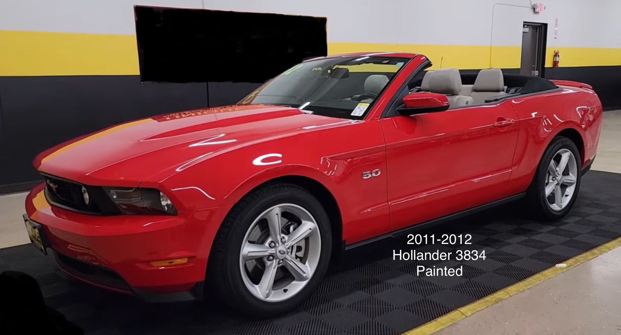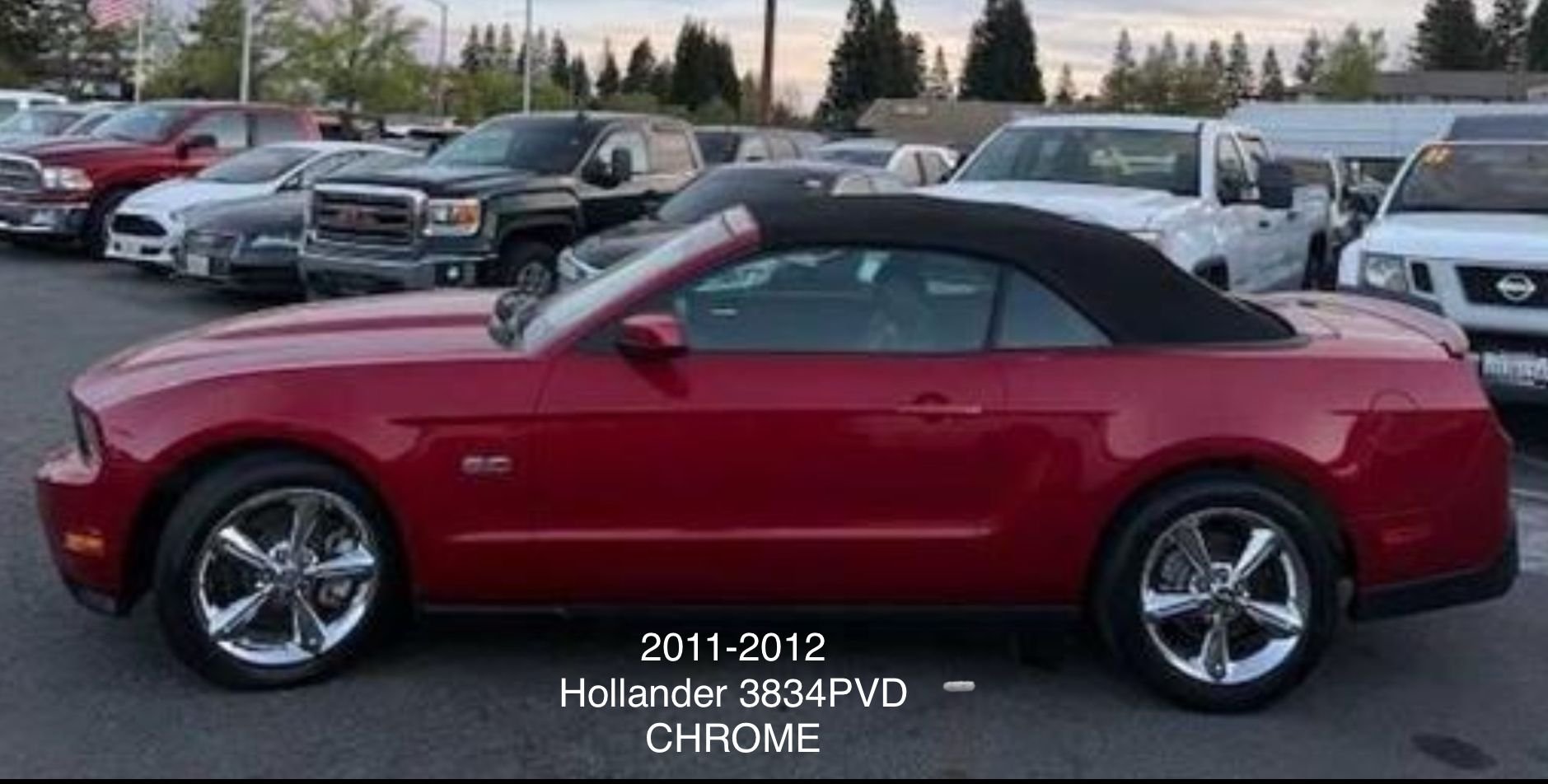 Now that I’ve got my 2011 GT, I realize through the 2011 Mustang order guide, these wheels normally came painted. Searching the web, I found an old sale car ad with these same wheels chrome wheels installed on a “Red candy” convertible like mine. I also found they are offered at a wheel refurbishing company as Hollander 3834PVD.