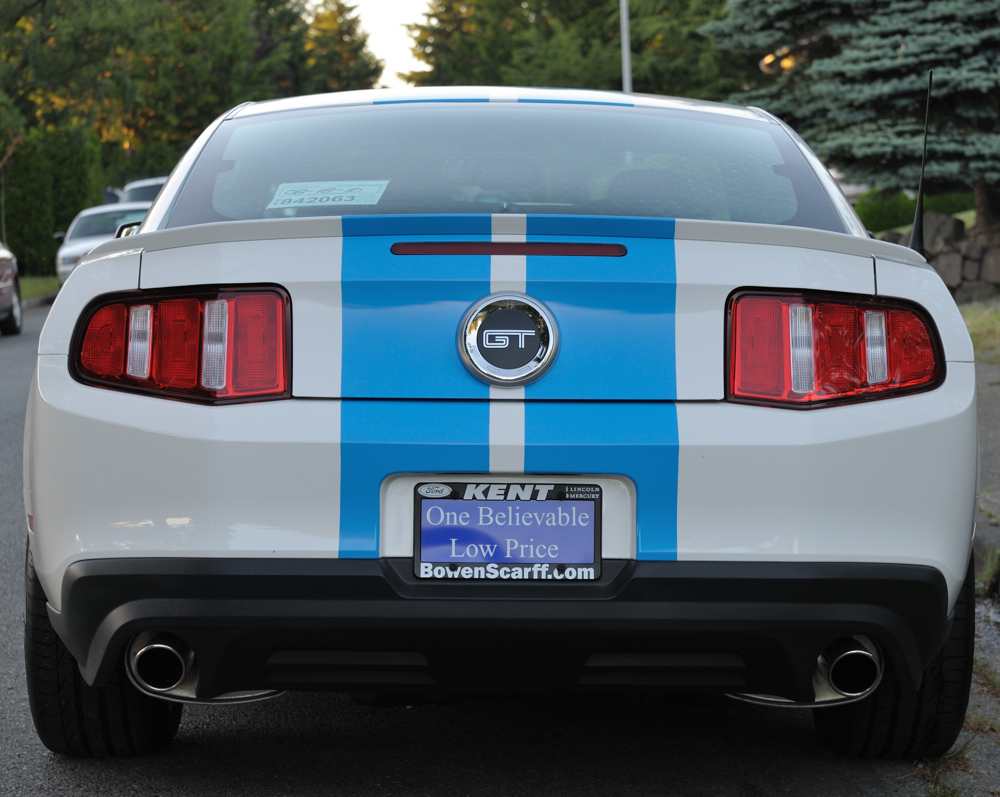 Shot of the rear and a shameless plug for Bowen Scarff Ford in Kent Wa. Great place to buy a new Mustang. No hassles from sales, finance or anyone. Just a straight up honest deal on an awesome car.