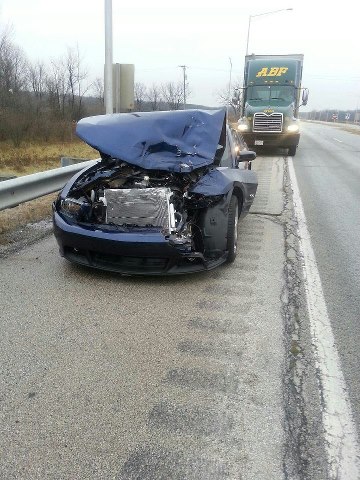 As for damage to my vehicle, well the engine block was cracked everything was pushed into the firewall, trans fluid and oil all over the highway. The car has to be totalled but I have to wait for the adjuster to look at it.