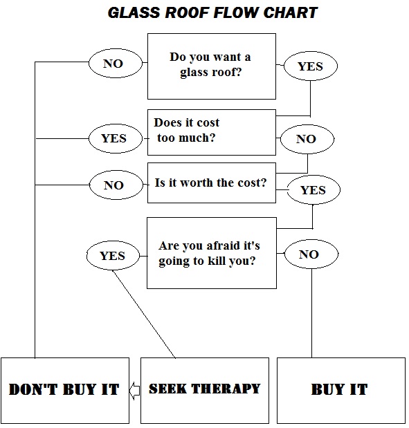 You might laugh, but I have SEEN EVERY SINGLE ONE OF THOSE postulated as reasons the glass roof is bad and will kill you and you shouldn't get it. Anybody with a f***ing shred of intellectual and analytical capability (and even the slightest inkling for basic research) will know in about six seconds that all those theories are pure, unadulterated, high clarity, USDA Grade A bull****.