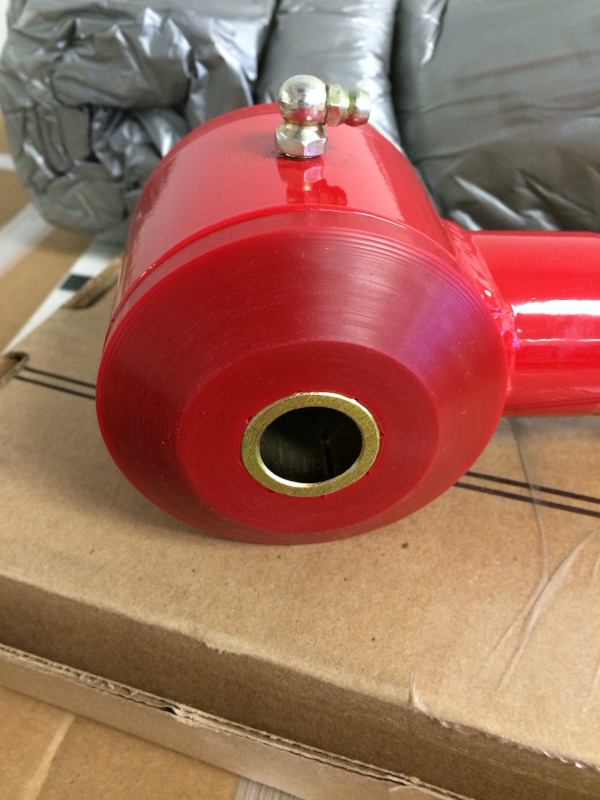 The overly soft rubber bushings in the stock arms are good for a compliant ride, but allow for a lot of play...which is wheel hop. The oem links are made of stamped steel which lacks rigidity and flexes relatively easily. This though, is not what causes wheel hop on the street. The mushy rubber bushings are the cause...