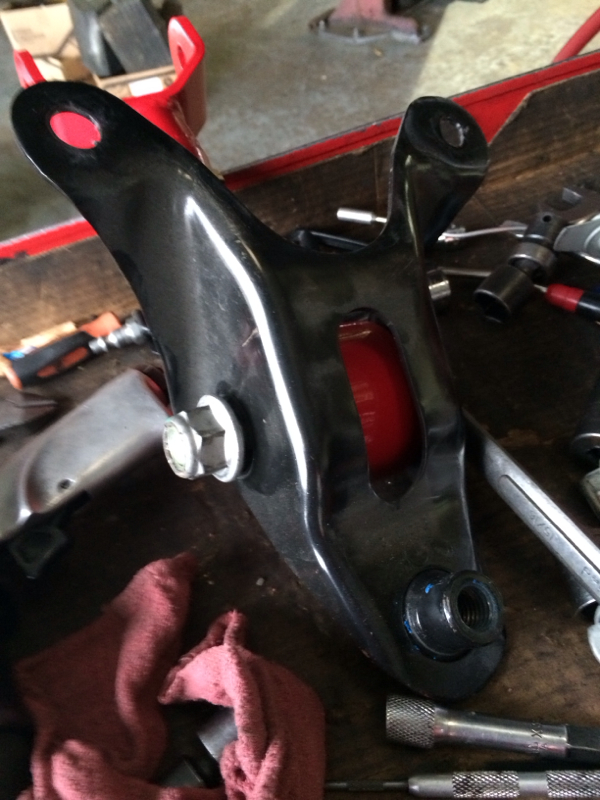 So to recap, if you are not planning to lower your stang, but want to further reduce hop, get a cheap non-adj uca with poly bushings. Bmr makes beast pieces and Jay@hypermotive is where I'd start. Here are some photos showing where I may have picked up a thing or two in my quest to kill the hop. I was successful, but this is somewhat overkill bc I do not frequent the strip