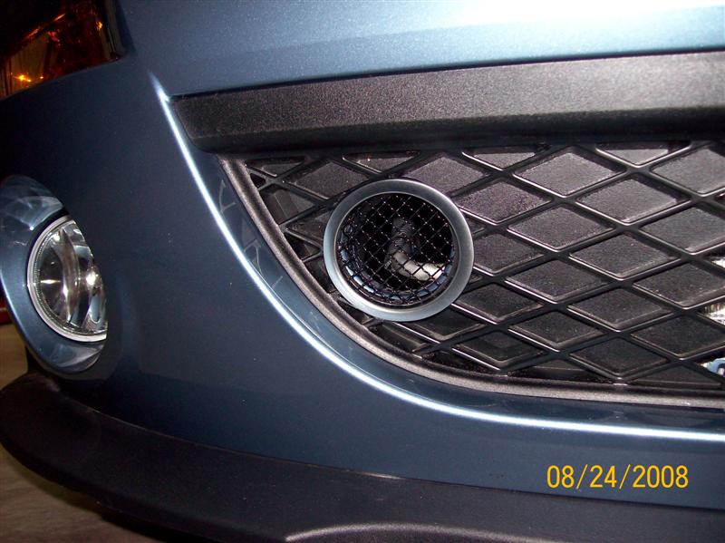 However, if you're willing to take enough time and have lots of patience it can be done. While the lower grill is still mounted in the fascia, you can use a 2.25" hole saw from the back side of the fascia to properly locate the bezels. Then remove the lower grill from the fascia. Now is where it gets difficult. Due to the compound angles, the remaining material must be carefully removed and the bezel fit numerous times to prevent making the hole either too large or the wrong shape. Then once you have one side done, you get to do it all over again on the other side. The bezel just slips in the grill and is held in place with a small plastic oblong shaped retainer from the back side of the grill. That retainer has a precut hole so the center can be removed to make the ducts functional. If you wish to leave the center in the retainer, the bezels are cosmetic. Then the grill can be reinstalled in the fascia.
