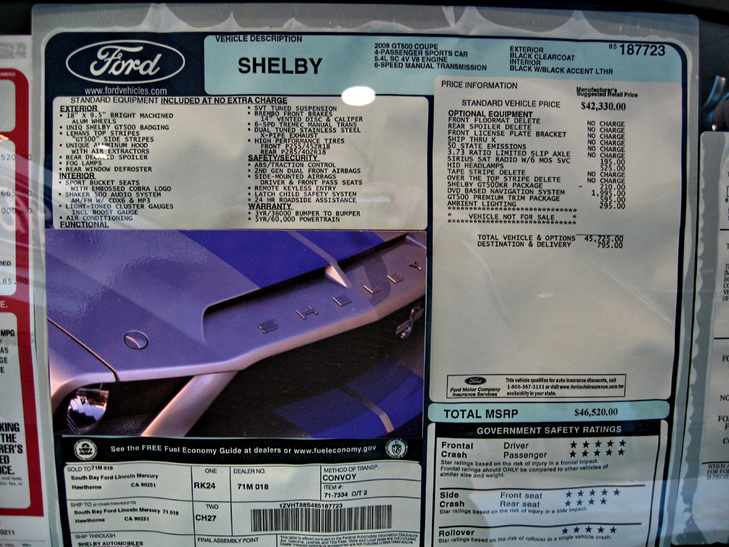 at GT500's and when the dealer gives an option to view the window sticker some list