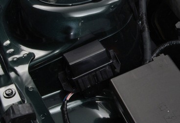 Also. Was looking at the release pictures of the engine compartment area on the new Bullitt and saw something. Look at the very front of the passenger side front suspension strut body support area. What is that black box/module bolted there and wired to the fuse box. Our Calstang has two threaded holes there, which we have filled with two polished 10MM cad-plated bolts for doing shows. Does anyone else have that black box on an '08 or know just what that thing really is? Maybe a Daytime running lights unit? Thanks, if you find anything on this piece!! "RC"
