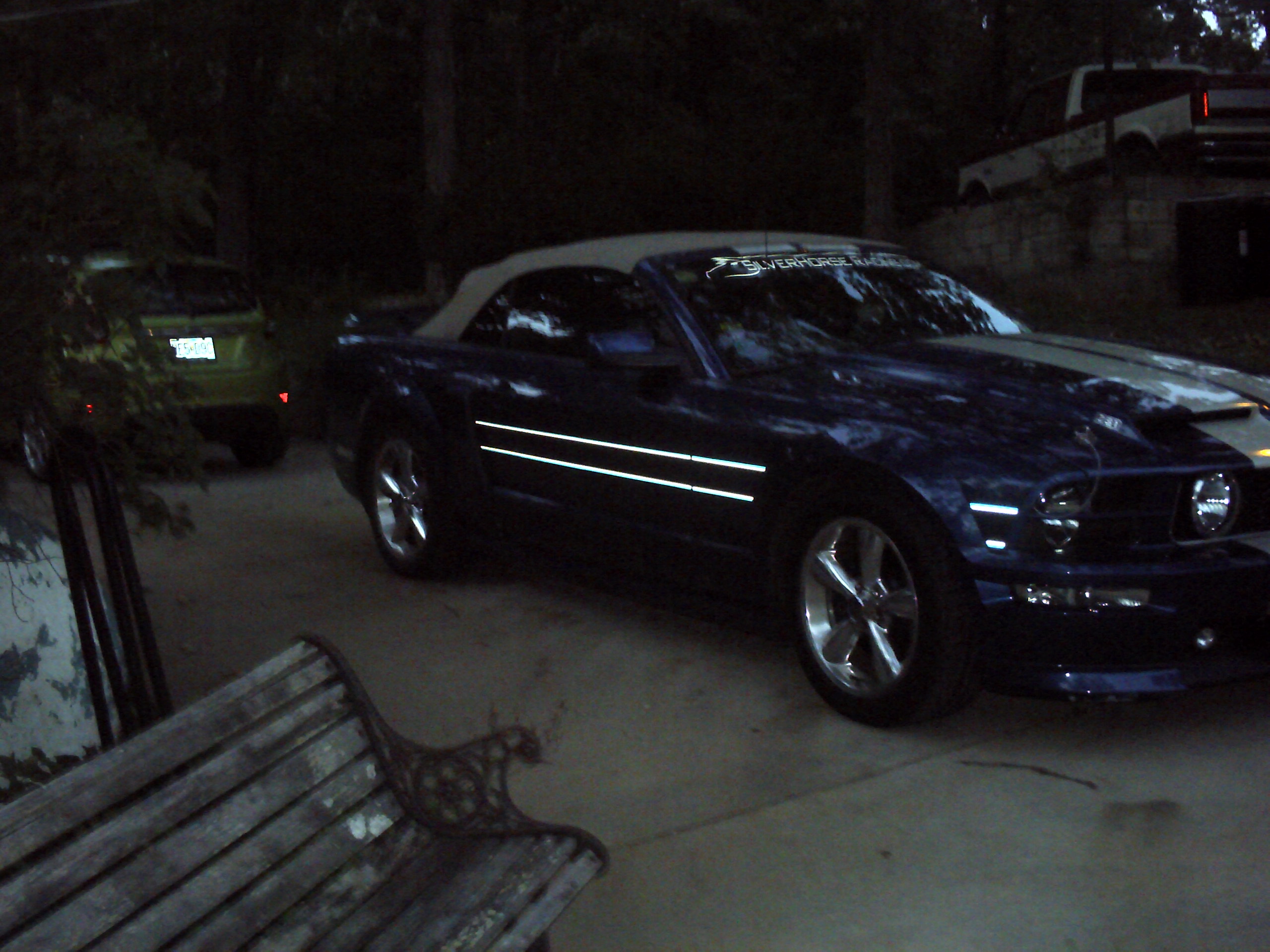 After stairing at my car wondering what can I do next.... some reflective striping along the CS stripe.... its 1/8 silver reflective with 1/4 blue reflective. will get some more shots in daylight...