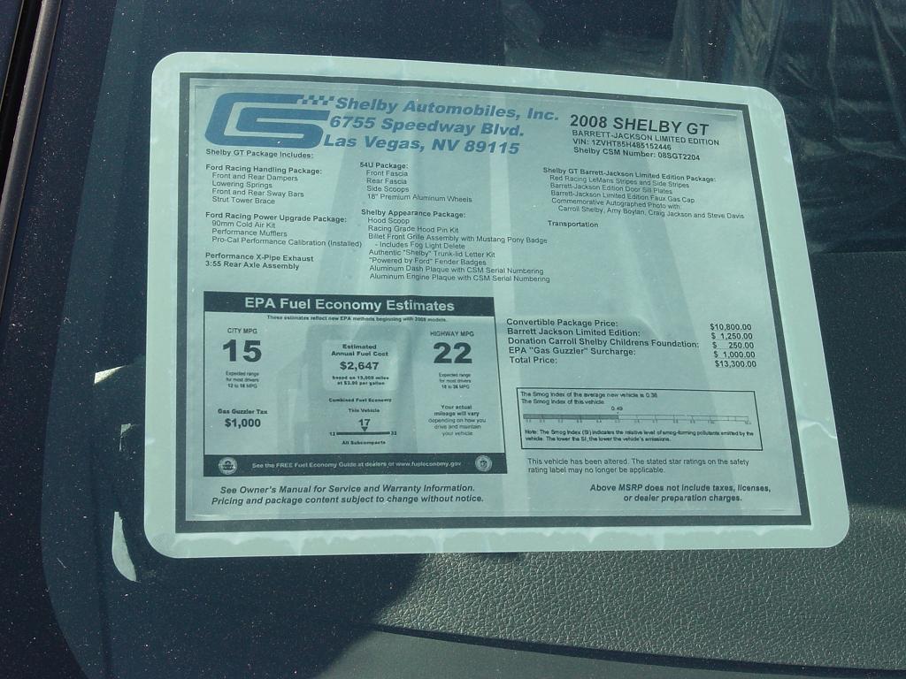 I was at B-J on Saturday and Sunday. On Saturday, I saw four black Mustangs with red stripes parked in rows of two between a building and a chain-link fence. One was completely covered in clear plastic, the only coupe. The remaining three were convertibles. They were definitely not parked for show so I wasn't sure whether we could go look at these cars. We did anyways. What was interesting was the handwriting on the passenger side airbag cover: