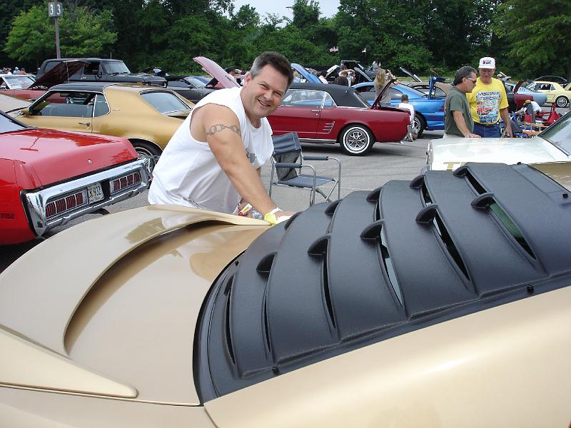 I came across this guy who was wearing a hospital wrist band. He said he was a big Chevy fan and even has a Camaro that he takes to shows. His wife just gave birth to a baby that she persuaded him to name Shelby. Then she made him leave her in the hospital and bring her Mustang to our show. What a great guy.