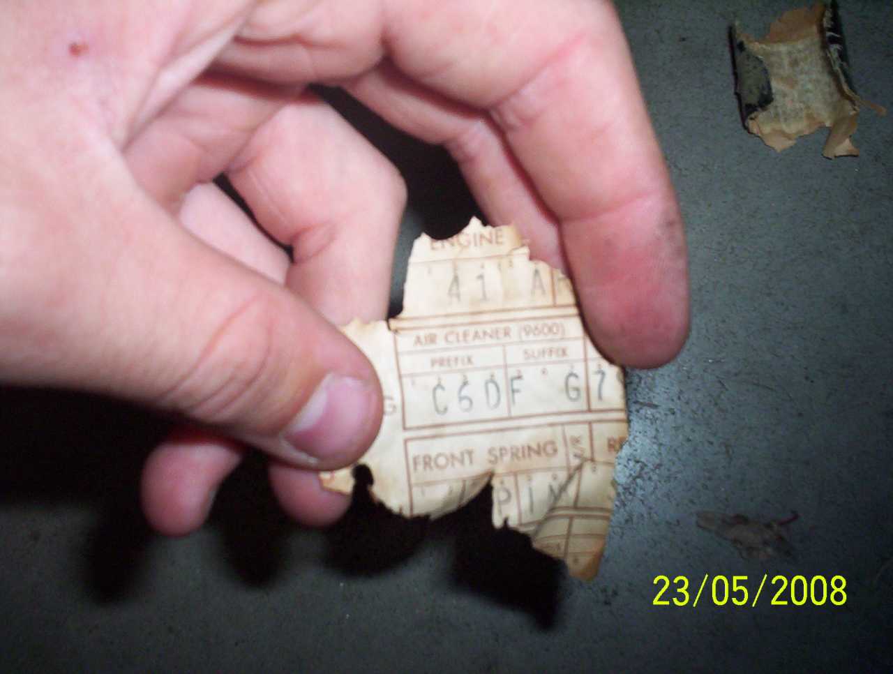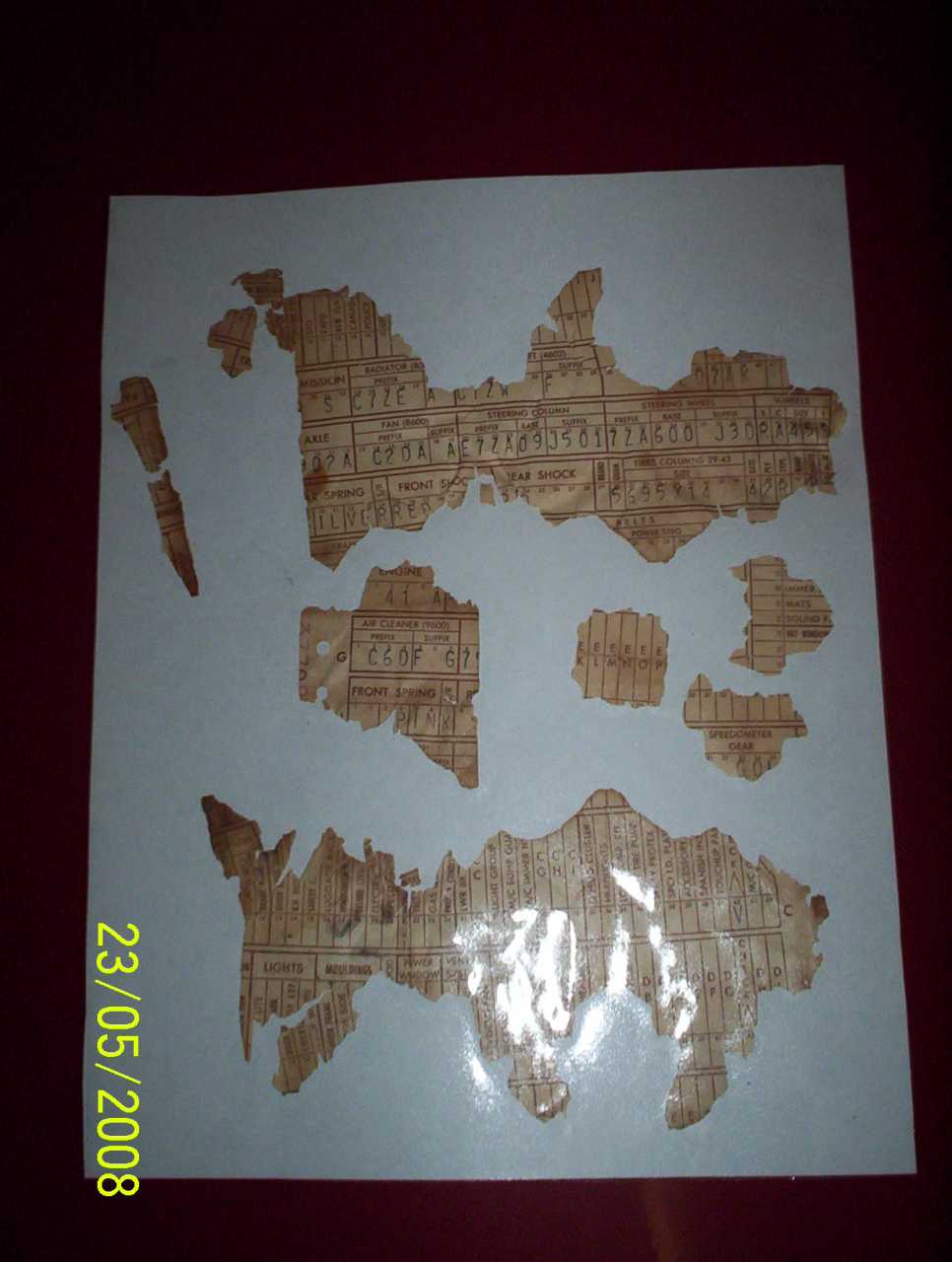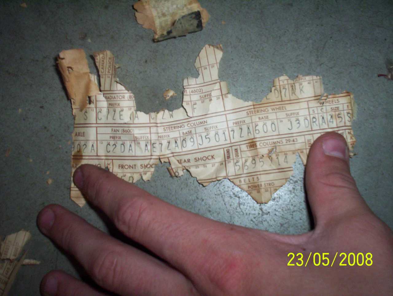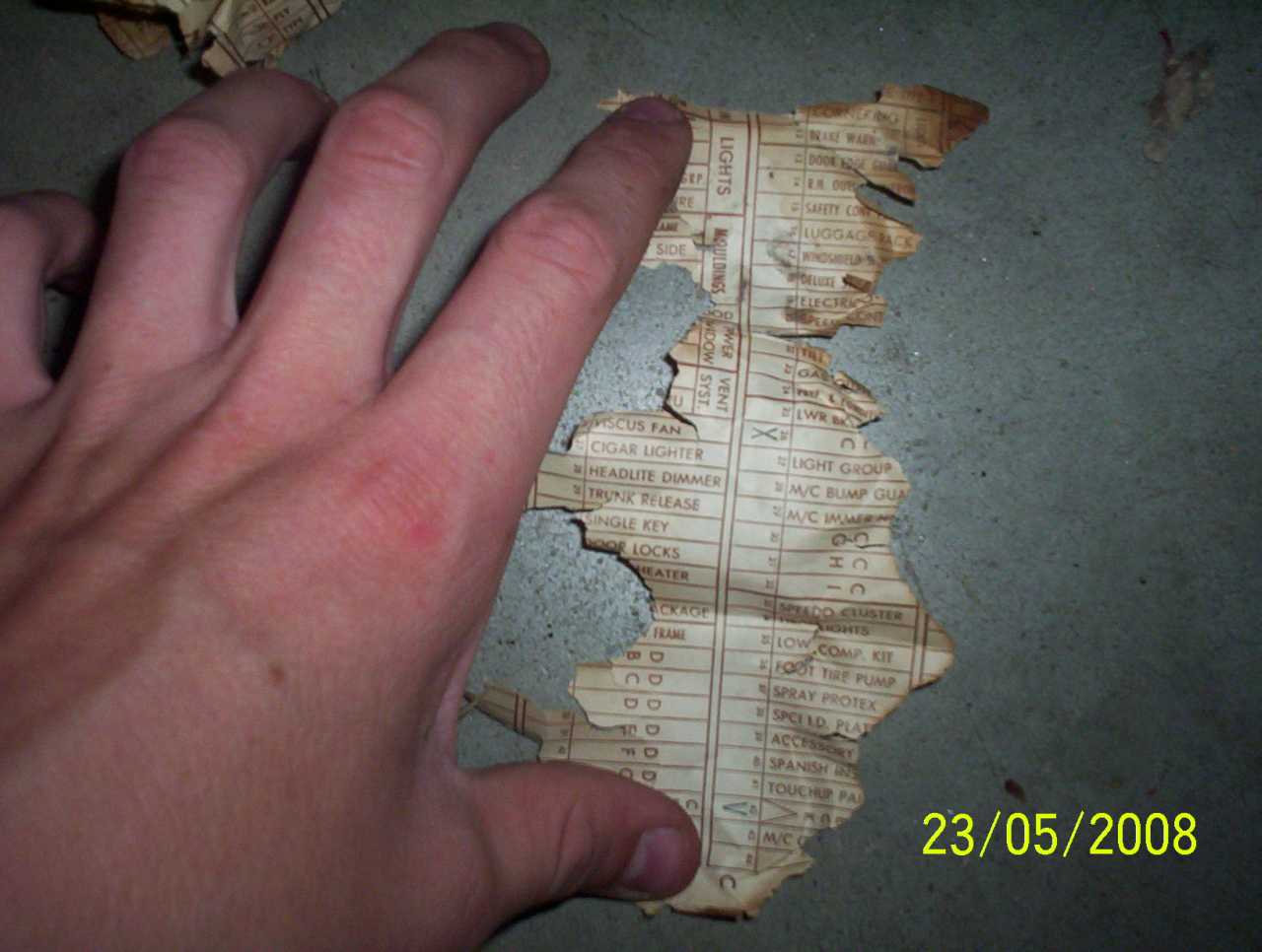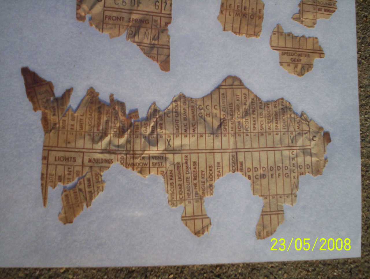 Does anyone know a website or place that has an example build sheet for a 1967 Mustang? I just found part of my build sheet and want to know about 2 accesories it got. The writing is torn off, but you can still see the number and the X and V.