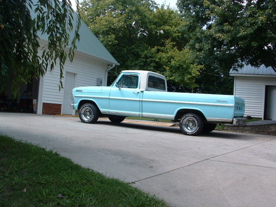 Well...not that kind of addition. Picked up a pick-up on the 1st. What a great way to start the New Year! Traded my non-Ford '52 ****** for a 1969 F100 SWB, 240 6 cylinder, 3 speed. Solid truck overall with just minor front floor pan replacement needed. Got a stuck brake to fix and a leaking radiator to repair or replace before it's drivable, but was impressed how easily it started the last couple of days in the extreme cold. Am amazed how good the bed floor is. Been needing a full size truck to haul building materials during a home remodel and my son's Sport Side Ranger just won't hold 4' wide sheets of OSB or sheetrock. Here's a couple of pics. kennyg