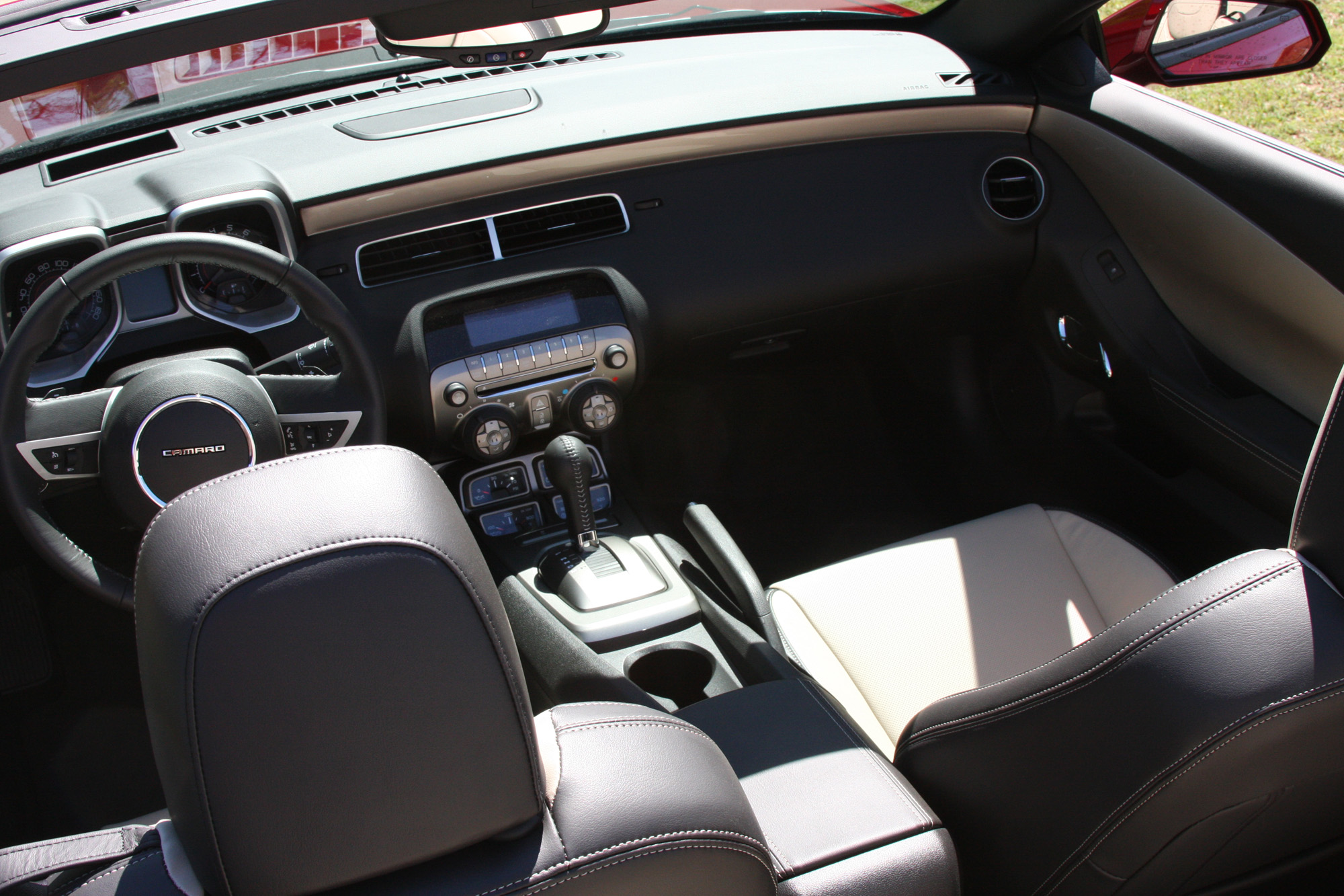 The interior on the Camaro has its pluses and minuses. I like the two tone seats but I'm not a big fan of the dash although the top of the line 2SS/RS (which this is) is a little better. The new Mustangs (my Roush as an example) has a better dash as long as you have the premium package. The seats on the Mustang are not quite as nice.