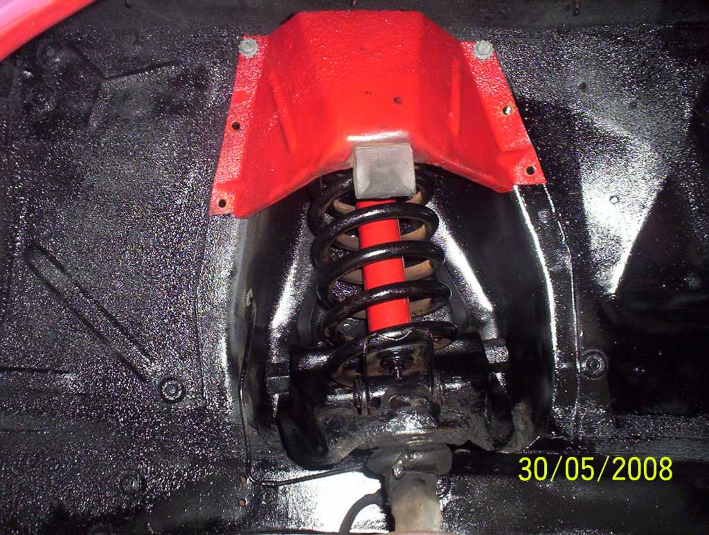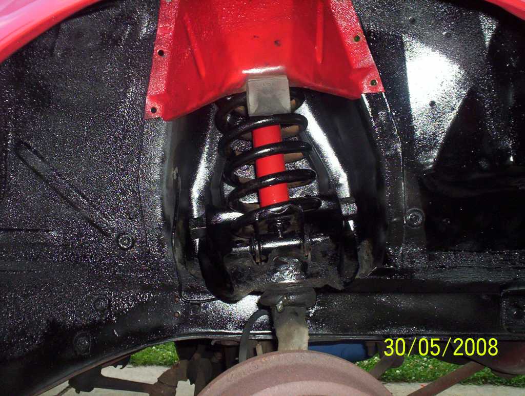 Today I had some extra time and decided to paint my wheel wells and my coils. Tomorrow I am going to paint the engine bay area. I painted the coil covers after I finished putting all the parts back together when we finished the drop.